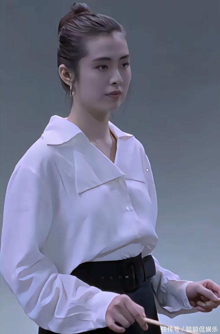 利用宽版腰带强调腰线,是90年代常见的穿搭技巧。这套造型以「同色系层次」取胜,看似简单,却非常考验比例与气场。白色合身上衣勾勒出利落线条,交叉式剪裁让视觉自然集中于腰腹位置;下身搭配白色高腰裤,透过一致的色调延伸身形比例,让整体看起来更加修长。点睛关键落在宽版黑色腰带上,它不只明确划出腰线,也为全白造型注入一点力量感与对比,使柔与刚取得平衡。这样的穿法不追求繁复细节,而是用剪裁、比例与配件说话,是极具时尚完成度的时髦穿搭。王祖贤穿搭公式6:白色装饰大学T+黑色衬衫