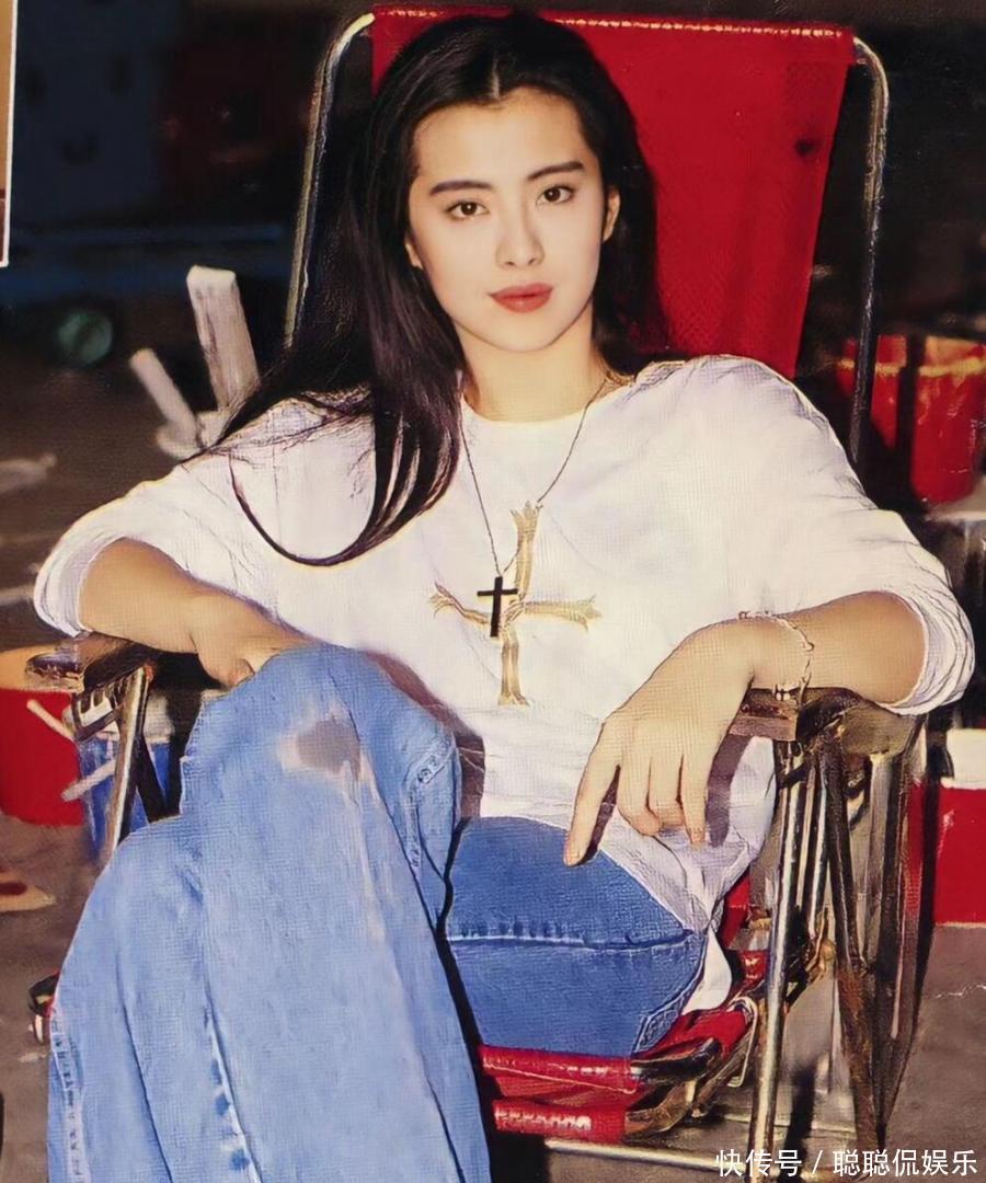 最后这套造型几乎没有任何技巧,却最能说明王祖贤的穿搭核心。白色十字架印花上衣版型宽松,线条自然落在肩与手臂之间,既有随性感,也保留了90年代特有的潇洒气息;下身搭配浅色丹宁裤,裤管宽度与水洗色泽让整体更显轻盈,不刻意拉长比例,却看起来非常自在。视觉重点落在胸前的十字架项链,金属光泽在白色上衣衬托下格外醒目,替整套休闲造型注入一抹个性与力量。白T与牛仔裤,是任何时代都存在的组合,但她却用最简单的单品,表现最鲜明的风格立场,直到今天依然成立。